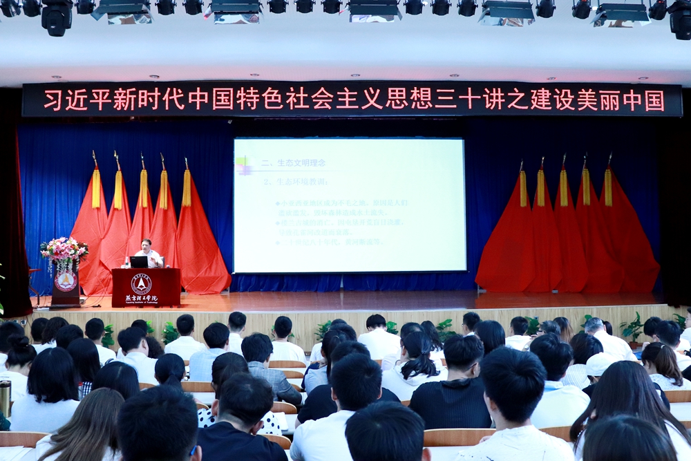 9月25日,校长杨庚宇围绕习近平新时代中国特色社会主义思想三十讲,聚焦第二十二讲“建设美丽中国”主题,在学校报告厅面向全校师生党员、入党积极分子开讲,畅谈生态文明建设和绿色循环低碳发展。