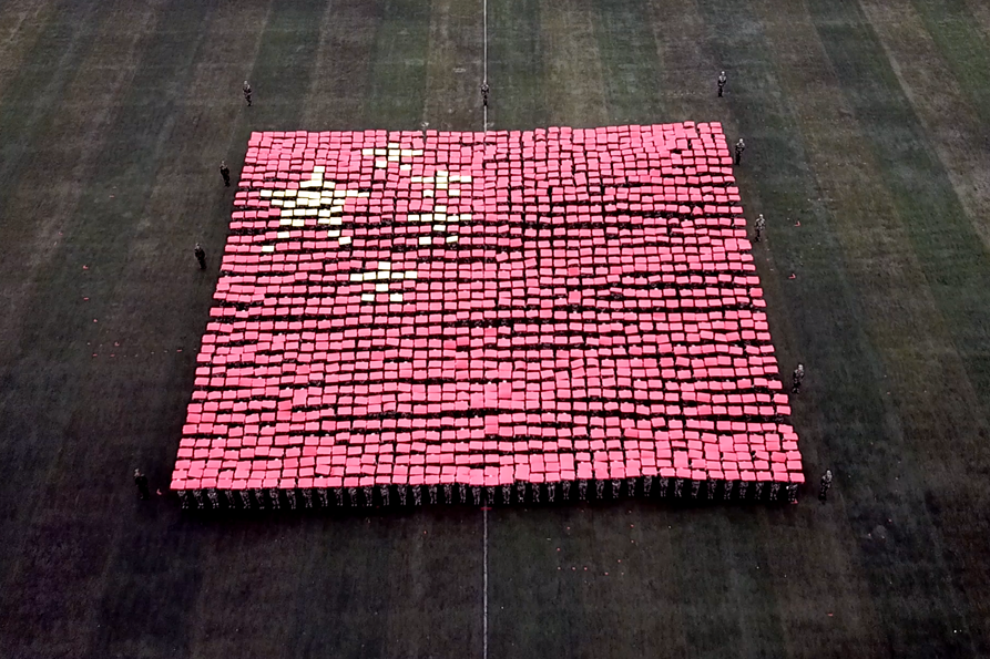 燕京理工学院2019级学生军训结训:7600人绘图庆祝新中国成立70周年