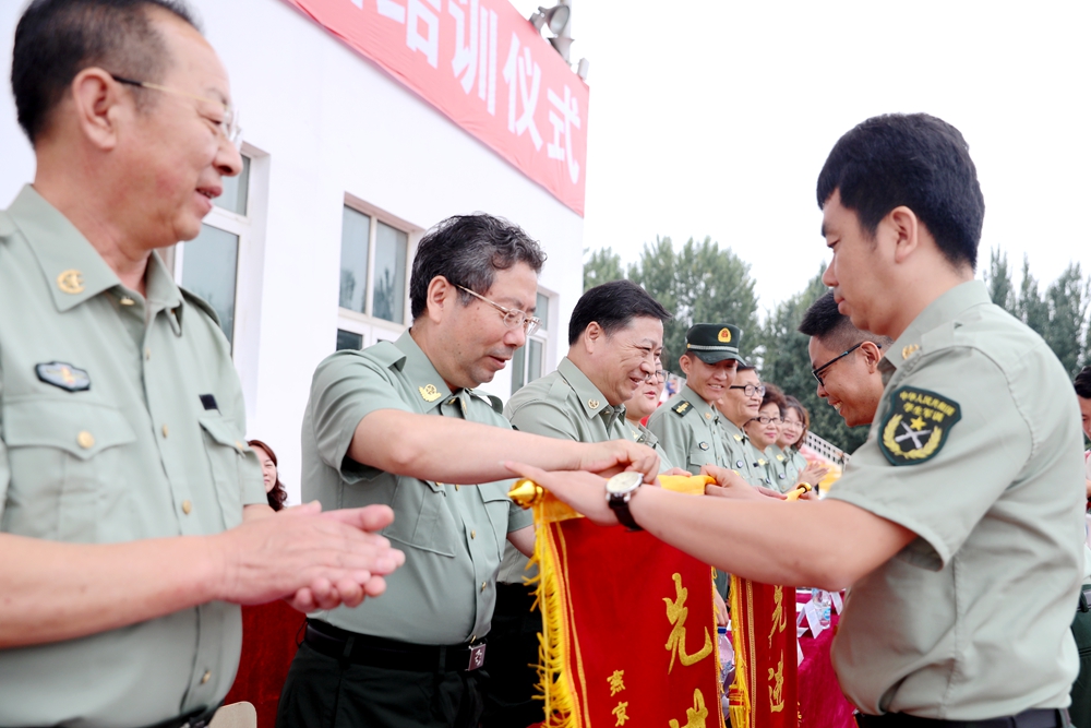 党委书记李建英向承训部队赠送锦旗,向全体施训教官表达了感谢。