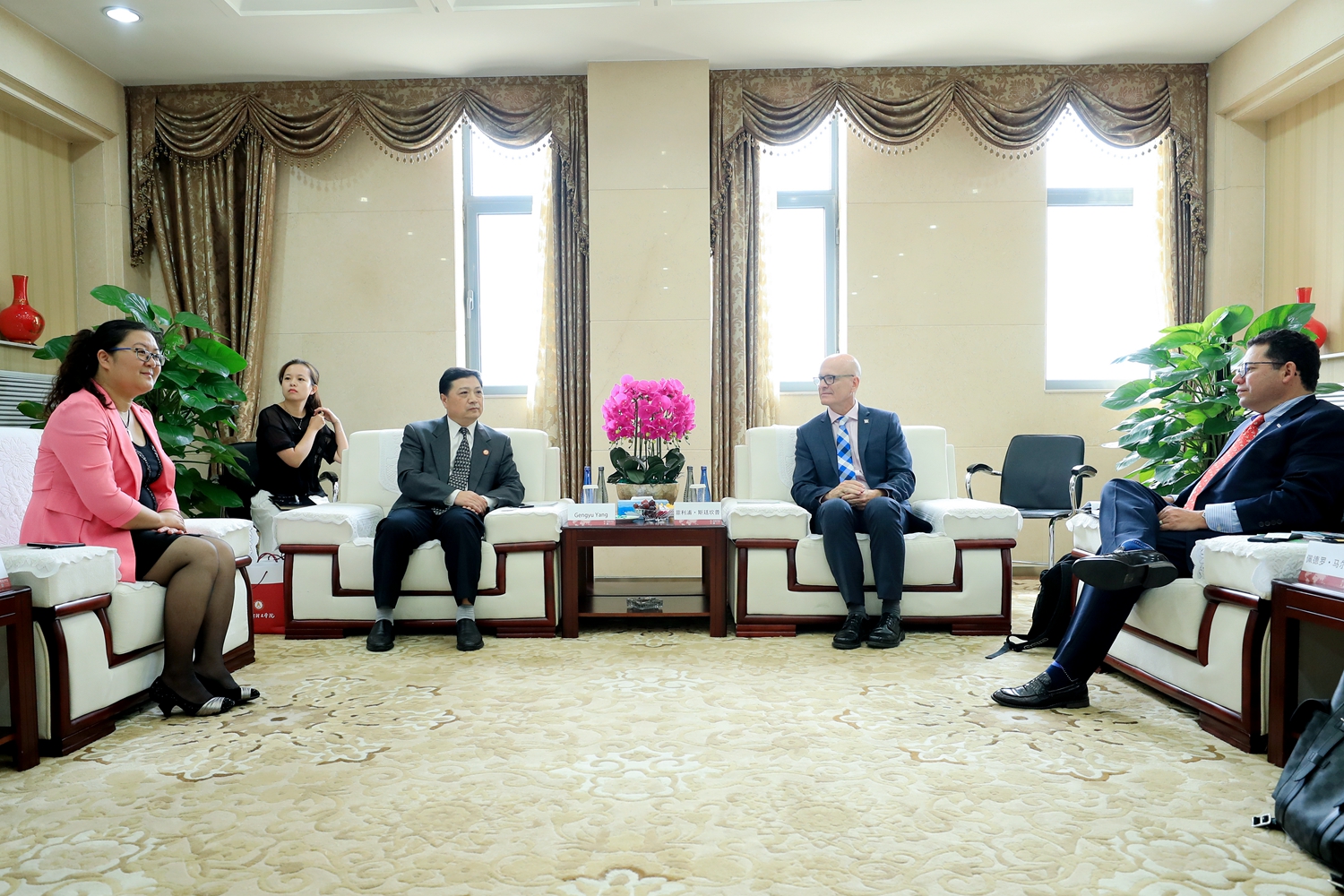 校长菲利普·斯廷坎普博士对师生的热情欢迎表示感谢,对学校的发展速度表示钦佩,称赞了学校国际化办学成就。他对两校建立的友好合作十分满意,并愿意进一步加深合作。副校长佩德罗·马尔克斯博士介绍了皇家大学的专业设置、特色专业、师生概况以及国际化发展情况等,并就两校计划推进的双本科学位项目、专升本项目等国际合作项目进行了洽谈。