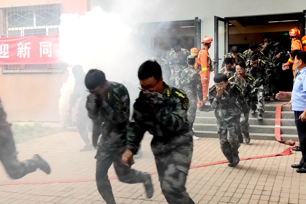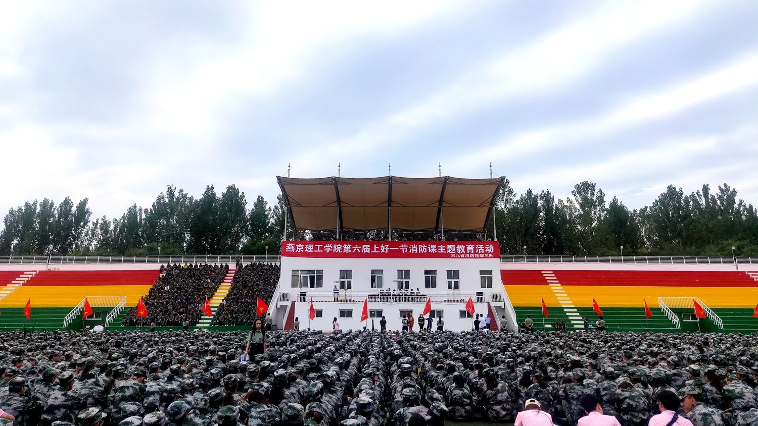 9月11日,结合河北省第六届“上好一节消防课”主题教育活动,燕京理工学院新生军训期间组织进行了消防疏散演练,三河市消防救援大队大队长卢健、燕郊消防救援中队指导员张激超等消防官兵和燕京理工学院校长助理刘鹏飞、安全处处长助理白瑞琦、各二级学院主管学生工作副院长、相关部处负责人、军训教官以及2019级全体新生参加了此次演练。
