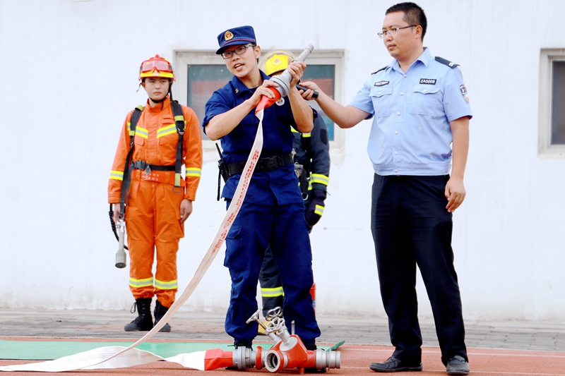 学生安全撤离到大操场后,有7300名同学观看了灭火器材操作演习和消防知识讲解活动,安全处处长助理白瑞琦主持活动并提出做好消防安全工作,是保障师生生命与学校财产安全、促进学校健康稳定发展的关键,通过应急疏散演练,让同学们学到安全防范知识,遇到紧急情况能够自我保护。随后,燕郊消防中队蔡教官进行了灭火设备的演示和讲解,包括无齿锯、防蜂服、防护服、液压破拆工具组、干粉灭火器、多功能喷头、30米水带、多功能连接器、举高喷射消防车等用途和使用方法,消防官兵们操作熟练敏捷,场面震撼,观演的同学们掌声连连。