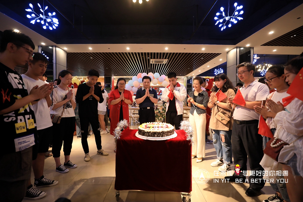 30日晚20:00,学校新装修的第一食堂气氛欢快,生日快乐歌悄然响起,11名当天过生日的新生们在学校领导老师和学长学姐们的簇拥下,切下最有纪念意义的生日蛋糕,度过了最难忘的18岁生日。学校领导杨庚宇、刘元园、吴汶燕、刘鹏飞为新生们送上生日礼物——带有校领导签名的寄语笔记本。校长杨庚宇代表全体师生,祝福同学们学习生活愉快、身体健康、学业有成、全面发展,期待同学们从燕理走向成功,成为国家栋梁之才。