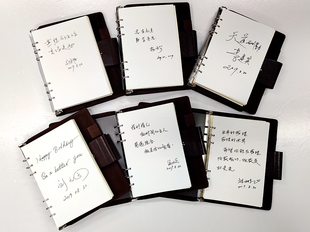 “燕理会让你变得更好”“志存高远 勤学善思”“天道酬勤”“Happy Birthday!Be a better you”“做时间的主人,做生活的智者”“收获成功收获美好未来”等等,这些充满期冀的美好寄语是全体校领导为新生们题写的,并在迎新日当天以生日礼物的形式赠送给了11名幸运的新生们。