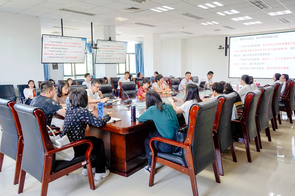 为推进新入职辅导员队伍向职业化、专业化发展,切实提高辅导员的素质和能力,8月23日-24日,2019年新入职、2019级新生和新转岗辅导员专项培训在综合楼328会议室举办。校长助理刘鹏飞出席、学生处副处长和各学院主管学生工作的副院长参加了培训会。