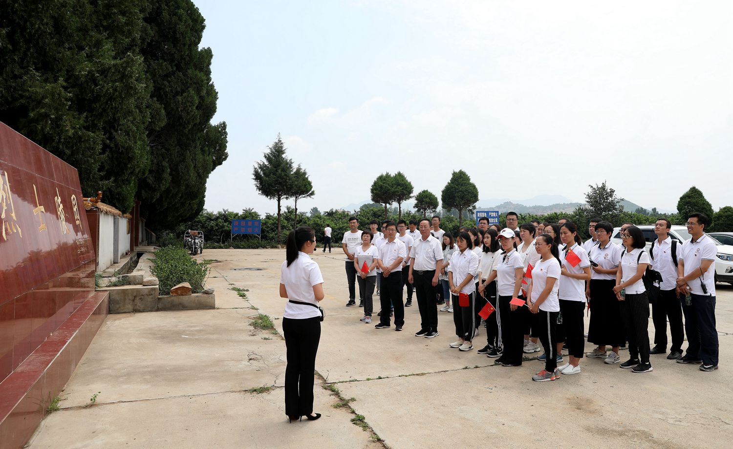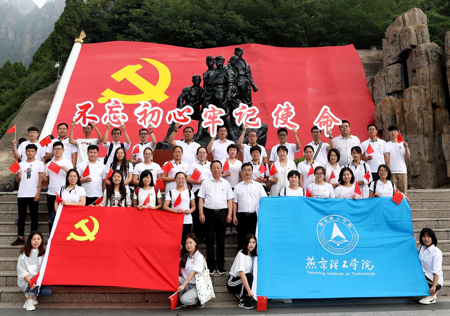 为庆祝新中国成立70周年、中国共产党成立98周年,7月11日,学校党委组织师生党员、入党积极分子50余人赴燕京理工学院河北易县红色教育基地开展“不忘初心跟党走 牢记使命勇担当”主题教育实践活动,追寻先辈红色足迹,重温革命先烈的艰苦奋斗光辉历史,继承和发扬党的光荣传统和优良作风。主题教育实践活动由校党委书记李建英、党委副书记刘鹏飞带队。
