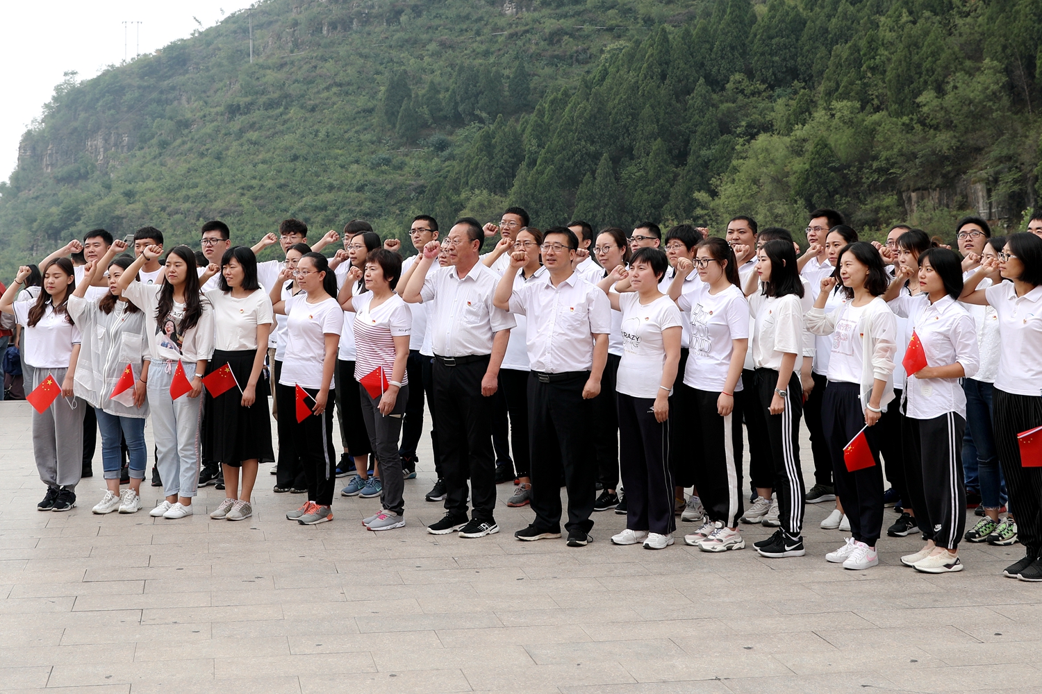 师生党员在狼牙山下重温入党誓词