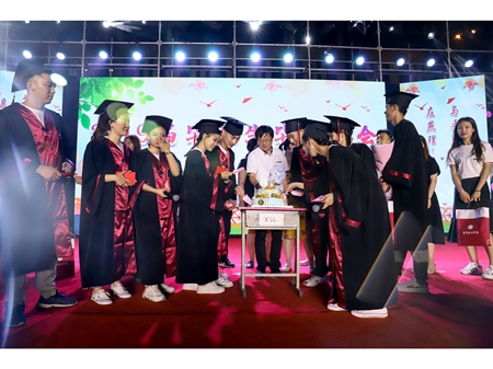 在音乐会上,各二级学院领导、大四辅导员老师们给毕业生录制了寄语视频,深切的祝福感动了在场的所有师生。校团委的老师为2019届毕业生们精心准备了毕业蛋糕,师生同唱毕业歌,一起切开蛋糕,共享2019届毕业生的喜悦。