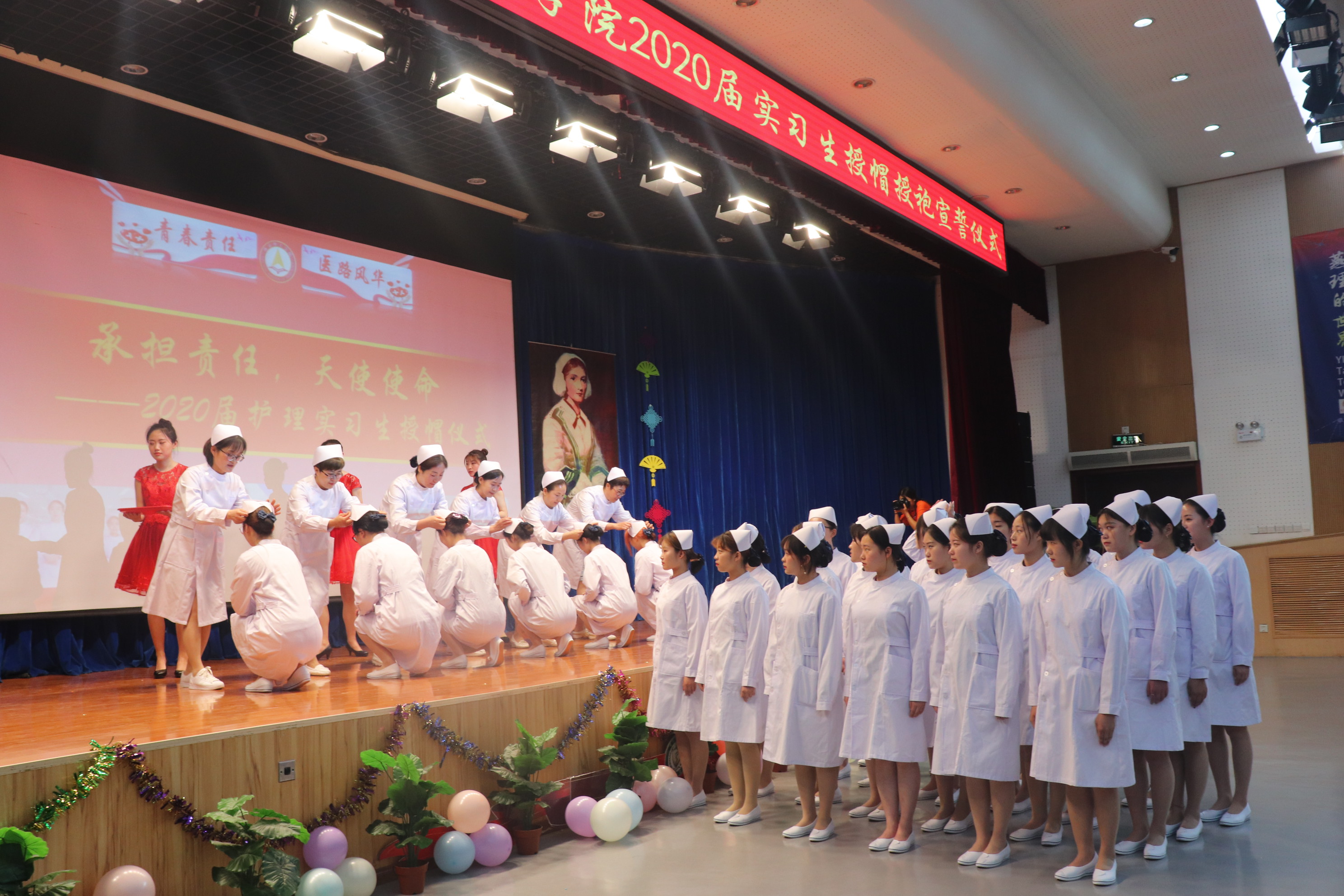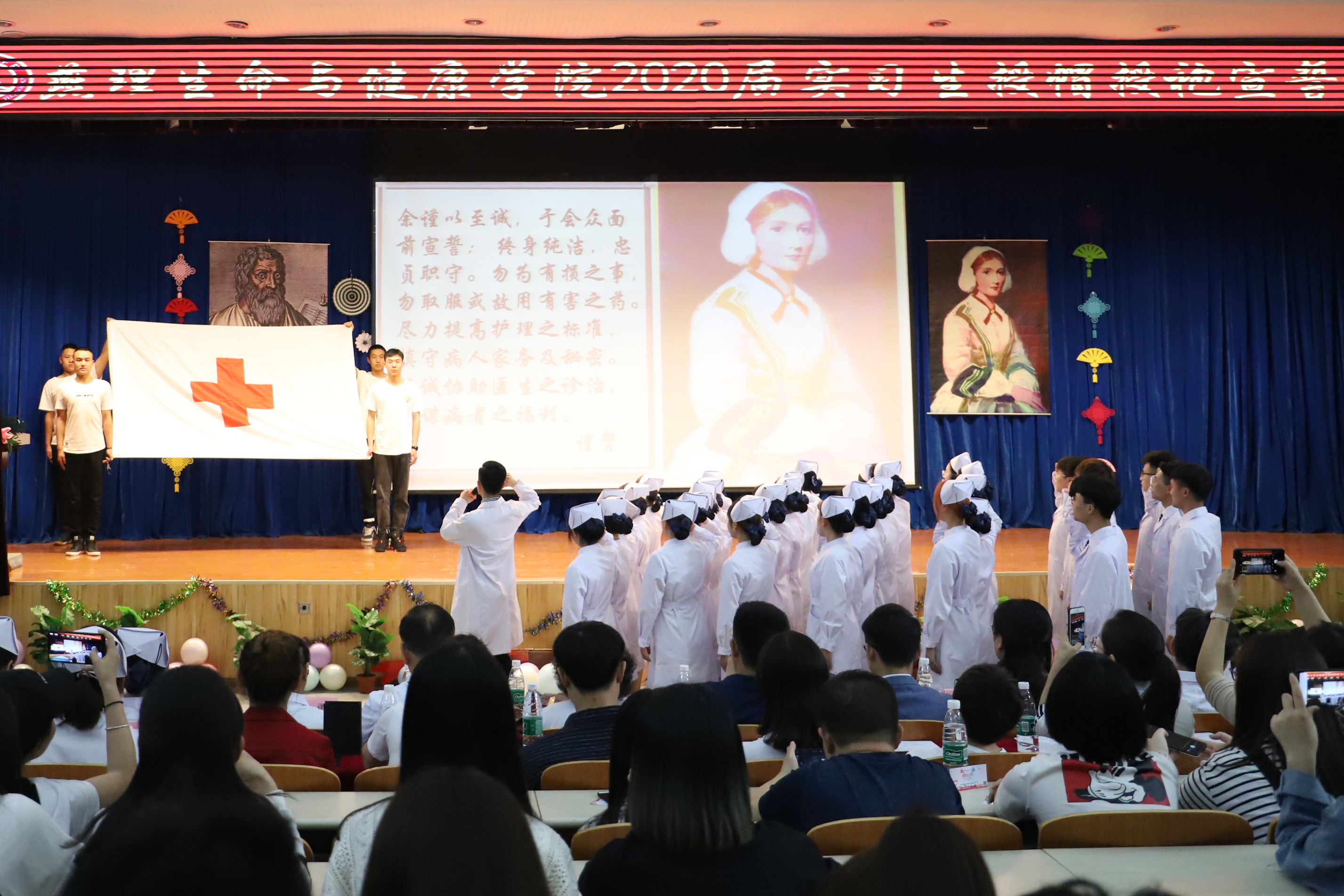 5月8日,为庆祝第108个“5·12”国际护士节,推动学院精神文明建设,促进教育教学工作的发展,弘扬南丁格尔精神,传承希波克拉底誓言,展现医学生良好的精神风貌和职业风范,生命与健康学院在报告厅举办“青春责任医路风华”第二届医学文化节暨2020届实习生授帽授袍宣誓仪式。
