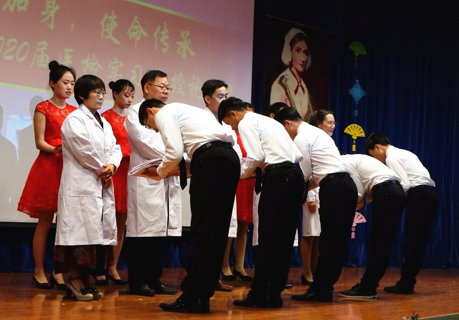 一袭白衣,意味着每位医检学子勇挑两肩重担,为广大患者遮挡酷暑、带来清凉,驱走严寒、携来健康和希望。“健康所系,性命相托。我志愿献身医学,热爱祖国,忠于人民,恪守医德……救死扶伤,不辞艰辛,执着追求,为祖国医药卫生事业的发展和人类身心健康奋斗终生”。医学生誓言让学生深刻感受到医者之初心、医者之担当。