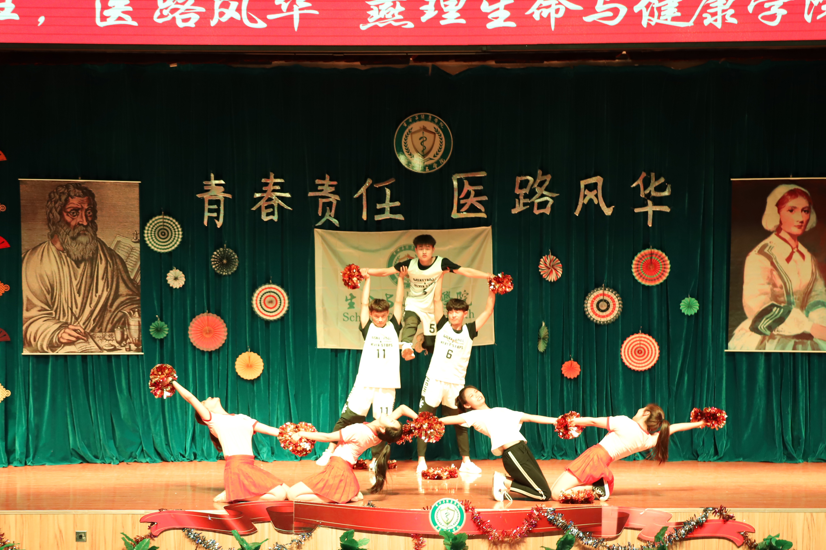在随后的文艺汇演中,《天使微笑 燕尾之姿》T台show,医学改编版歌曲串烧《沙漠骆驼》《卡路里》、相声《八扇屏》、舞蹈《青春有我》、舞台剧《一张考卷》、诗朗诵《青春责任 医路风华》,通过多样的表演形式,以诙谐的态度讲述了医学生的日常,令人捧腹的同时又感同身受,充分展现了同学们良好的精神风貌和职业风范。