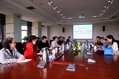 4月29日上午,科锐国际董事长高勇、摩根士丹利董事总经理周熙一行四人在北方国际大学联盟理事长杨炜长的陪同下来访我校,燕京理工学院领导吴保德、刘元园、吴汶燕、刘鹏飞热情接待了来访客人。