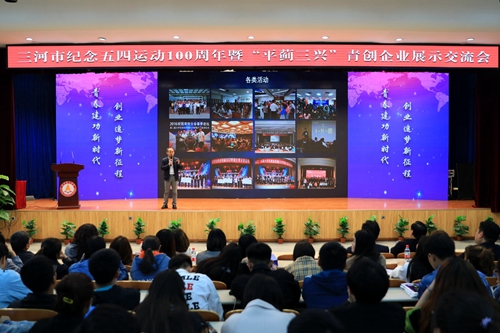 4月28日,“青春建功新时代 创业追梦新征程”纪念五四运动100周年暨“平蓟三兴”青创企业展示交流会在燕京理工学院举办。活动旨在纪念五四运动100周年,在全社会营造支持青年创新创业的良好氛围,鼓励和引导广大青年强化创新精神、增强创业意识、投身创业实践。廊坊市委组织部副调研员李富刚,三河市委常委、组织部长刘增禄,共青团廊坊市委副书记郑健、廊坊市委组织部人才科科长柯美明、北京市平谷团区委副书记赵菊、天津市蓟州团区委副书记孙行千、河北省兴隆团县委书记陆岩岩、三河市委组织部副部长苏金亮、三河市工信局局长崔晓龙、中国大学生创业就业服务平台状元汇创始人刘务乾、知投资本合伙人韩华、兴远高科(三河)孵化器有限公司董事长刘永成、北京弈博明道教育科技有限公司创始人CEO王胜会、圣亚投资有限公司行政&人力资源总监刘晓坤、北京博伟智鸿投资有限公司合伙人李进河、三河燕郊新技术创业服务中心副总经理刘伟、廊坊市国兴担保公司副总经理安玉清出席了活动,三河市委组织部、市工信局及燕郊高新区经发局、科技局等相关负责同志受邀参加了活动。华北科技学院、防灾科技学院、燕京职业技术学院相关负责同志及受聘青年创业导师、“青年就业创业见习基地”企业代表,各投资机构、孵化器、众创空间负责同志及参展项目代表、三河市各级团组织负责人,燕京理工学院校领导杨庚宇、刘鹏飞及师生代表等500余人参加了活动。