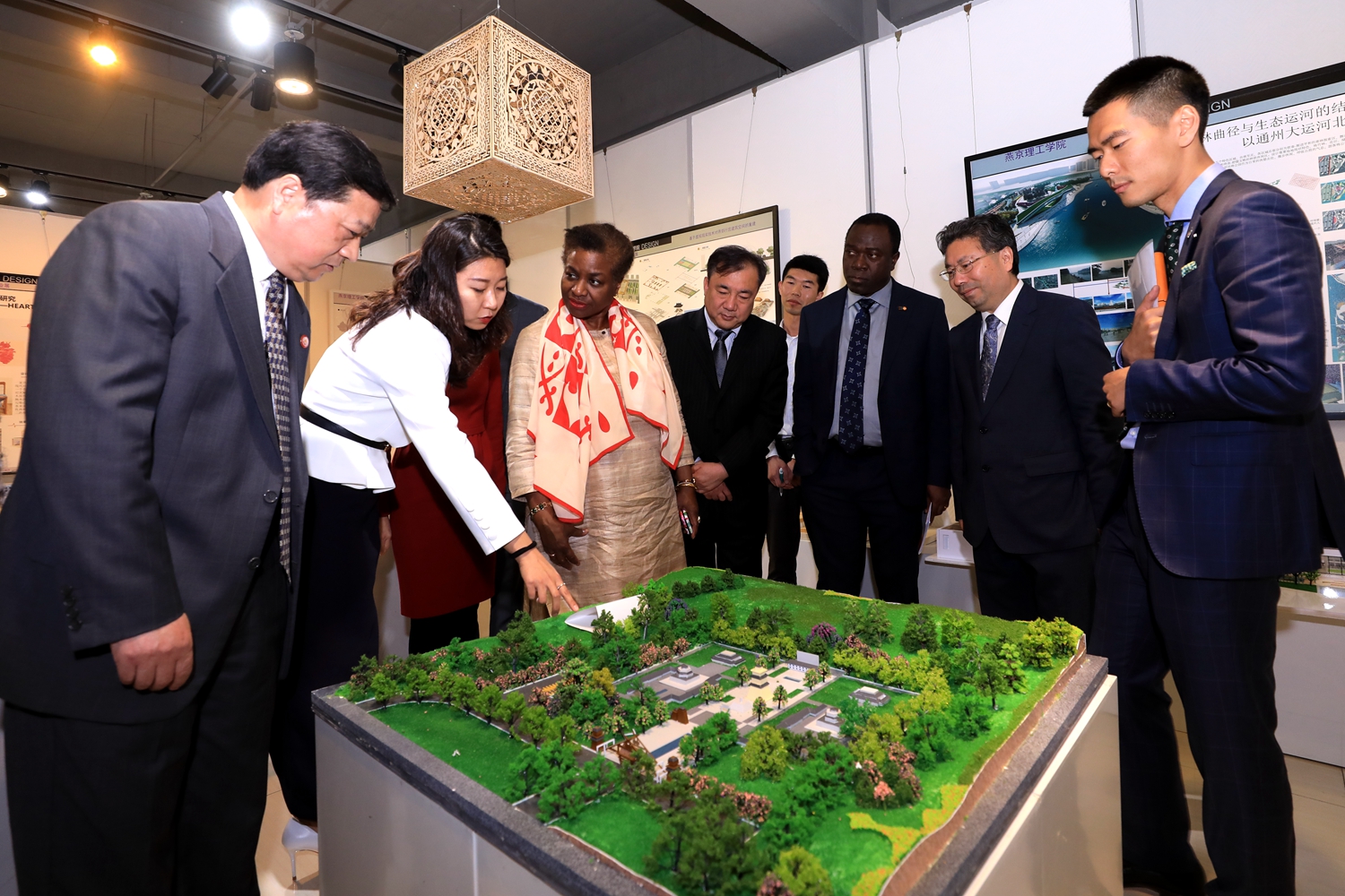 当天下午,卡内姆博士来到了燕京理工学院艺术展厅,她参观了艺术学院学生创意作品展,对同学们精巧的构思和出色的动手能力给予高度赞赏,连称“Amazing”。
