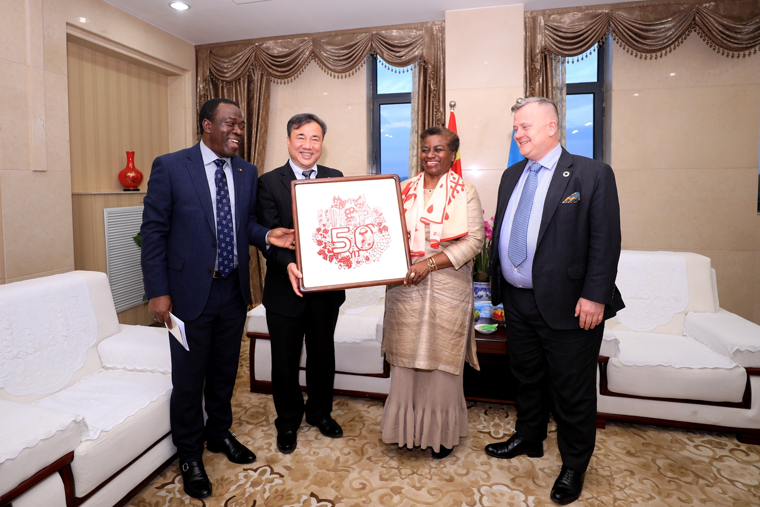 卡内姆博士此行还与北方国际大学联盟领导、燕京理工学院领导展开了会谈。北方国际大学联盟理事长杨炜长向卡内姆博士赠送了礼物,祝贺联合国人口基金成立五十周年。