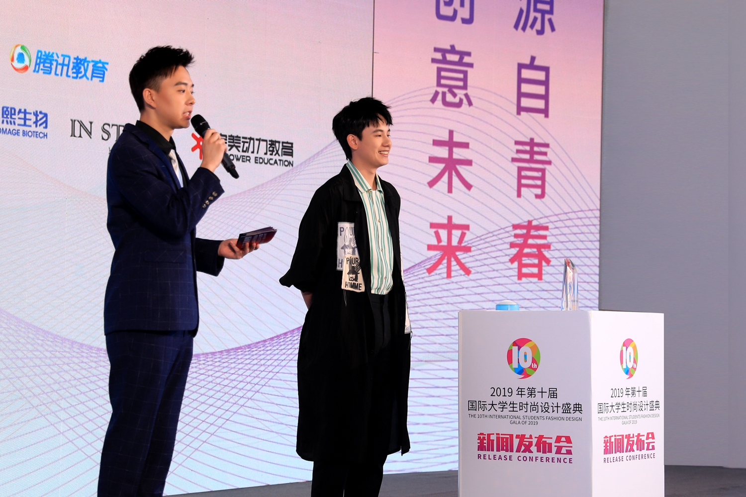 4月18日,第十届国际大学生时尚设计盛典新闻发布会在北京举行。盛典组委会向社会公布了本届盛典筹备工作进展情况,探讨了新时代时尚设计行业人才培养,并正式公布青年演员胡先煦为本届盛典代言人。