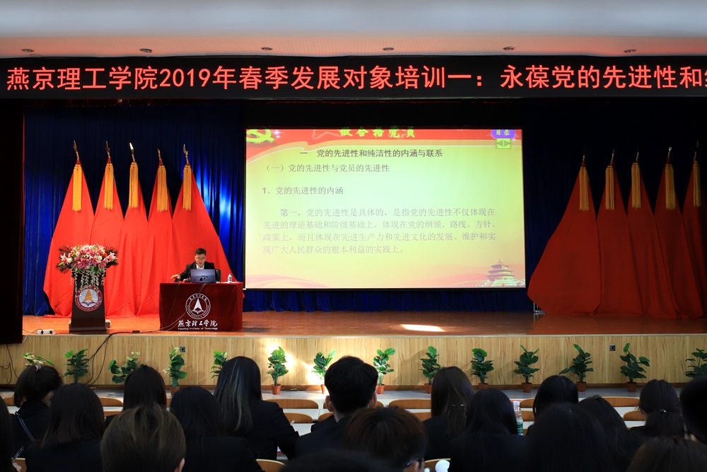 校党委副书记、校长助理刘鹏飞作了动员讲话。他强调,在迎接纪念“五四”运动100周年,中国共产党建党98周年,建国70周年到来之际,我们隆重举行2019年春季发展对象培训班有着特殊的意义,并代表学校党委对参加培训的学员,提出了几点要求:一是端正学习态度,增强学习的自觉性和主动性;二要深入理解和掌握学习的内容,自觉地按照党的要求来改造自己;三要坚持理论联系实际的学风,在不断的实践中加深对党的基本理论、基本知识的理解,锤炼我们的党性;四要加强组织纪律性,不断增强马克思主义修养。