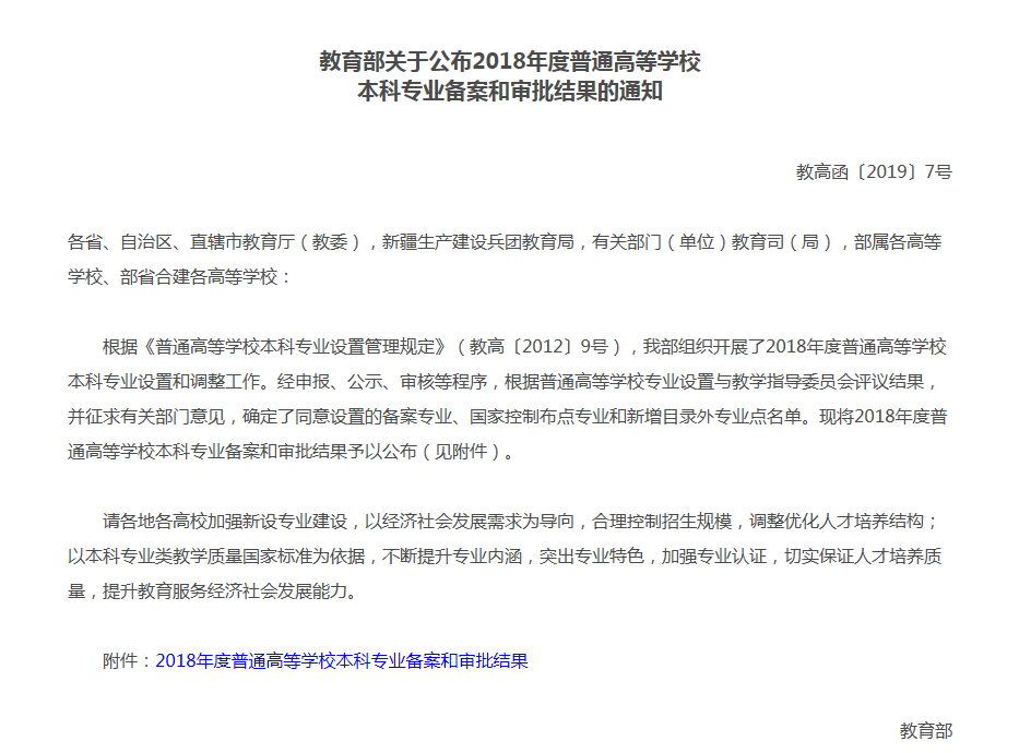 近日,教育部印发《关于公布2018年度普通高等学校本科专业备案和审批结果的通知》(教高函〔2019〕7号),我校申报的小学教育、汉语言文学、表演三个本科专业获批设置,可从2019年开始招生。至此,我校本科专业数量达到59个,涵盖工学、理学、法学、管理学、经济学、教育学、医学、文学、艺术学等9大学科门类。