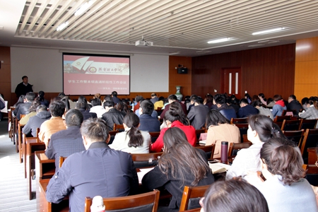 3月26日下午,我校2019年学工系统第一次全体会议在综合楼办公楼525会议室召开。校长助理刘鹏飞,各二级学院院长、副院长,学生处副处长,全体辅导员、学生处全体老师参加了会议。