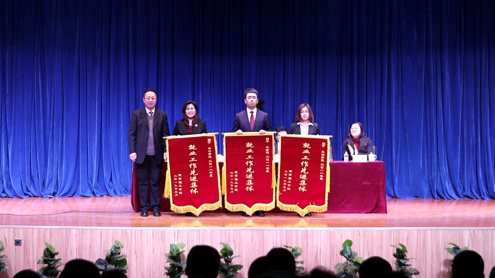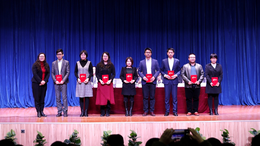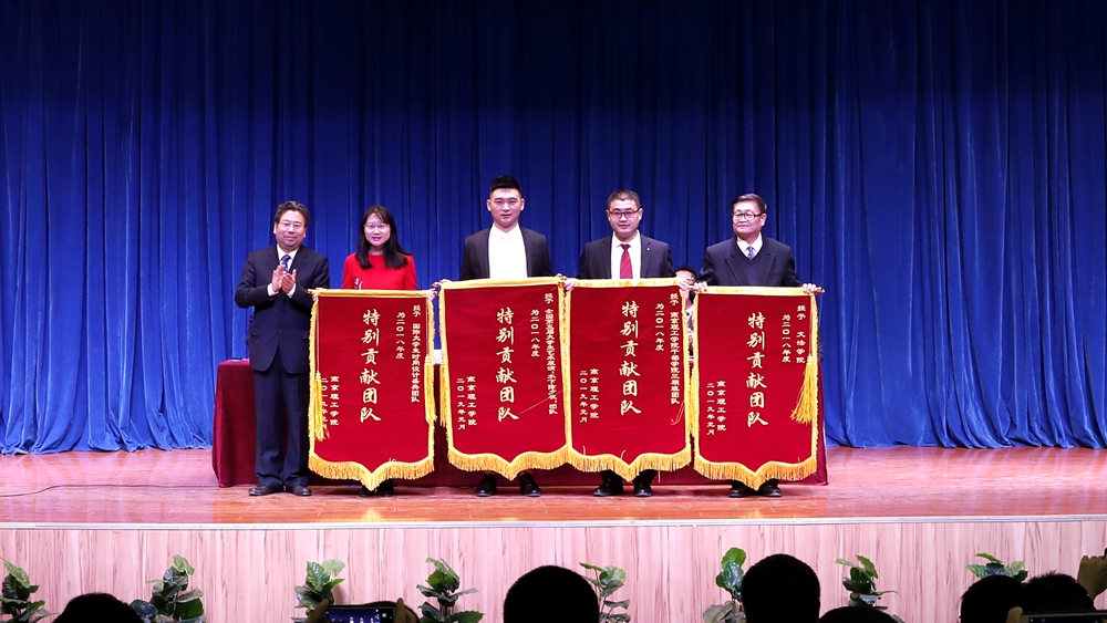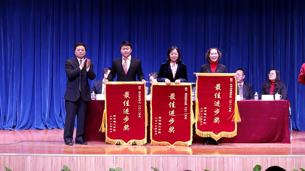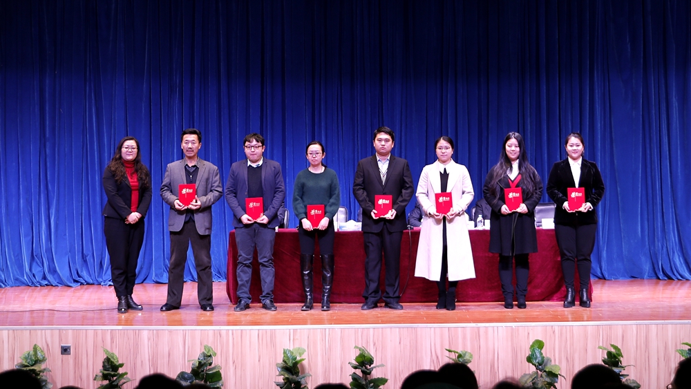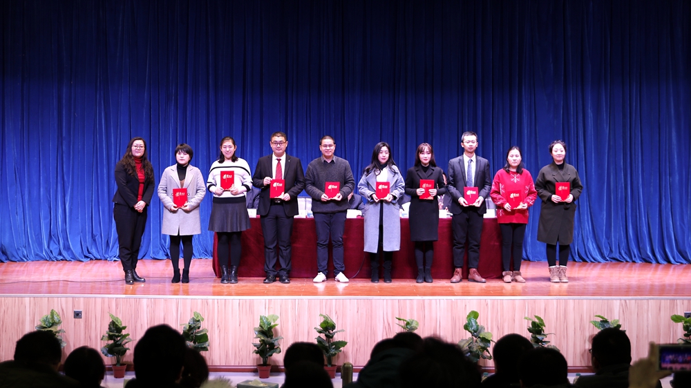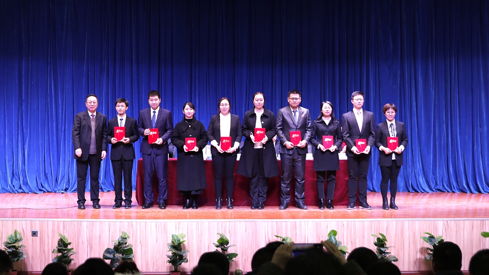 校党委书记李建英宣读2018年度先进集体和优秀个人的决定。大会表彰了先进学院和处室、特别贡献团队、忠诚敬业奖、创新奖、微留学和海外升硕先进集体、优秀干部、优秀教职工等13项目170个先进集体和优秀个人,与会领导分别为先进集体和优秀个人颁发奖状和锦旗,表彰他们为促进学校建设发展做出的贡献。先进处室代表、国际教育学院吴仲元现场分享了工作收获和感悟。