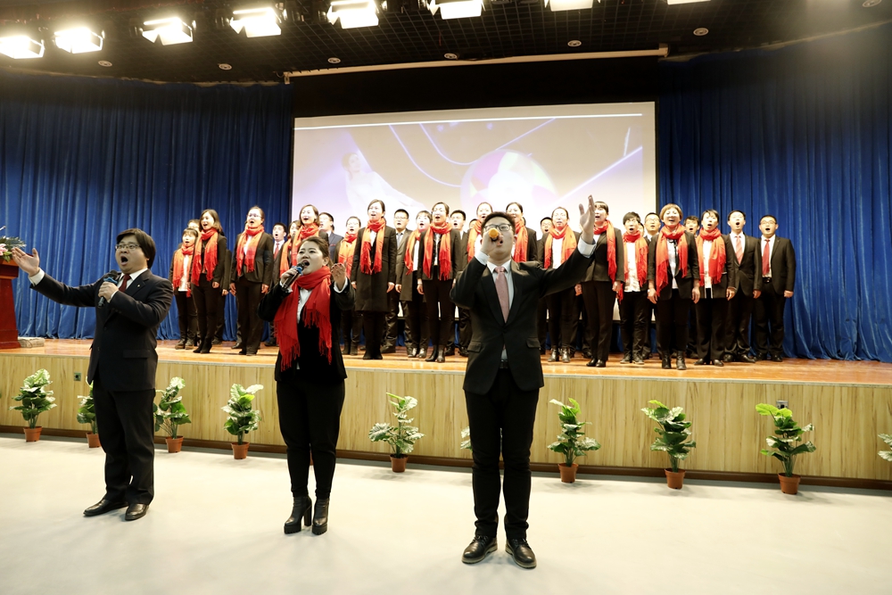 大会最后,学校干部学院学员代表们为大家献上了改编歌曲《走向辉煌》。2018年,学校的各项事业蓬勃发展,取得了骄人的成绩,2019年,学校将继续坚持“高端化、国际化、个性化”的发展战略,深入贯彻“连接机制人才”的年度主题,继续深入学习贯彻党的十九大精神和习近平新时代社会主义思想,全校教职员工也将以开阔的思维,创新的理念,饱满的热情和昂扬的斗志投入到工作中去,推动学校的跨越式发展,助力学校各项事业迈上新的台阶。