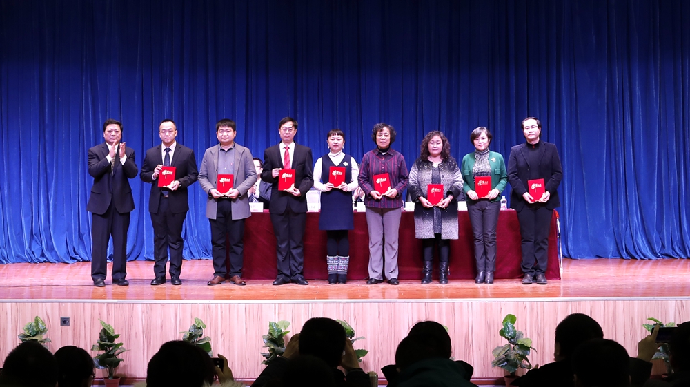 燕衔喜信春光好,猪拱华门幸福长。1月15日,燕京理工学院2018年度工作总结表彰大会在学校报告厅隆重召开。学校领导吴保德、杨庚宇、李建英、刘元园、吴汶燕、刘鹏飞与教职员工欢聚一堂,总结团结奋进勇于创新的2018年,用奋发向上的姿态迎接2019年的到来。大学联盟兄弟院校成都文理学院的挂职干部培训班集体应邀参加了活动。大会由副校长刘元园主持。