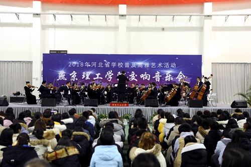 此次音乐会,河北省交响乐乐团给广大师生带来了一场精彩的视听盛宴。《春天的故事》歌颂了祖国改革开放不断发展,《祖国慈祥的母亲》表达了对祖国母亲的热爱和感激,独具特色的影视动漫音乐作品《豪勇七杰》和《天空之城》让师生感受到了交响乐的魅力。女声独唱《我爱你中国》用婉转的语调表达了对祖国的感恩之心。交响乐团的艺术家们还为师生演奏了外国经典作品《蝙蝠曲目》和《天鹅湖组曲》,让同学们接受了的国际艺术的洗礼,感受到了音乐无国界的真谛。