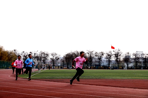 本次长跑接力赛以田径场主席台前为起点,沿田径场逆时针方向跑完一圈交接棒,各学院的8名男生和8名女生共计16名参赛运动员依次接力,按照预定路线跑完全程。现场观众呐喊助威声此起彼伏,来自9个学院的144名运动员们不畏严寒,展现出他们顽强的意志以及团队接力时的默契,用自己的激情与毅力冲击终点线。