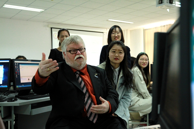 当天上午,加拿大CPA会员、卡普顿大学教授詹姆斯·德克里·海因斯来到了我校经管实验中心,指导学生实训课程,并受聘为我校“客座教授”。詹姆斯·德克里·海因斯教授与学生热情互动,其专业知识和学术魅力获得学生盛赞。