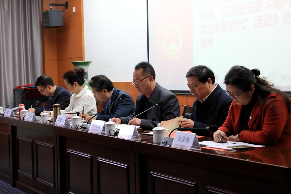 会上,党委书记李建英传达了中共河北省教育厅相关文件精神并做了部署,要求紧密结合“两学一做”学习教育的常态化制度化和“不忘初心、牢记使命”的主题教育内容,深入开展“弘扬爱国奋斗精神建功立业新时代”系列活动。