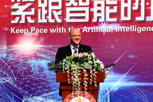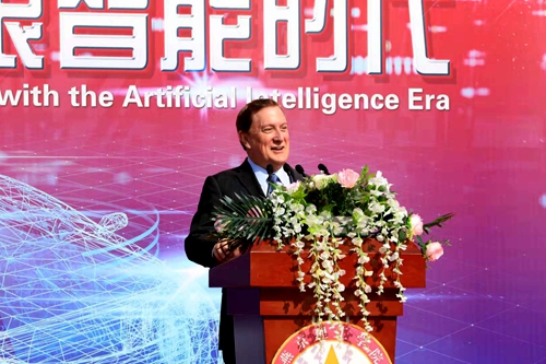 美国索菲亚大学校长巴里·瑞恩莅临我校智能汽车学院揭牌仪式现场,为活动致辞。巴里·瑞恩校长谈到,在智能时代,汽车产业正在发生深度变革,智能网联汽车将成为新一轮的产业革命。在世界各国都在大力发展智能网联汽车的背景下,成立智能汽车研究院将有力地推进产教深度融合。燕京理工学院智能汽车研究院的成立,是学生生活的一部分,是社区的一部分,也是城市的一部分,相信智能研究与的成立能够加快人工智能领域的核心技术研发突破,推动人工智能领域的新发展。