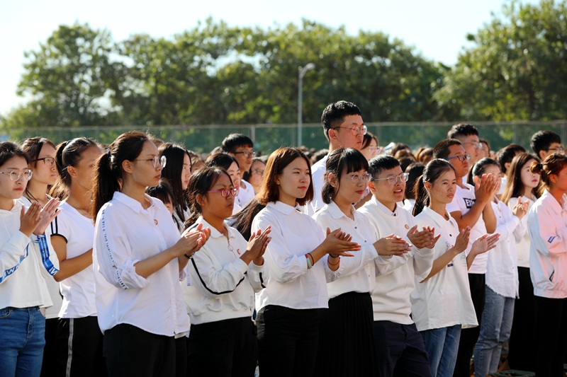 开学典礼光荣神圣的“入学礼”仪式和严肃隆重的入学宣誓环节,标志着2018级全体新同学从此正式踏上大学的求学之路,在燕京理工学院明德至善,坚守初心,扬帆远航,创造新的辉煌。现场,6100名新同学身着白色上衣、深色裤子参加“入学礼”仪式;学校邀请优秀校友代表,来自信息科学与技术学院、现就职中科院的蒲嘉鹏和来自艺术学院、现就读清华大学的庞艳萍为新生领誓。