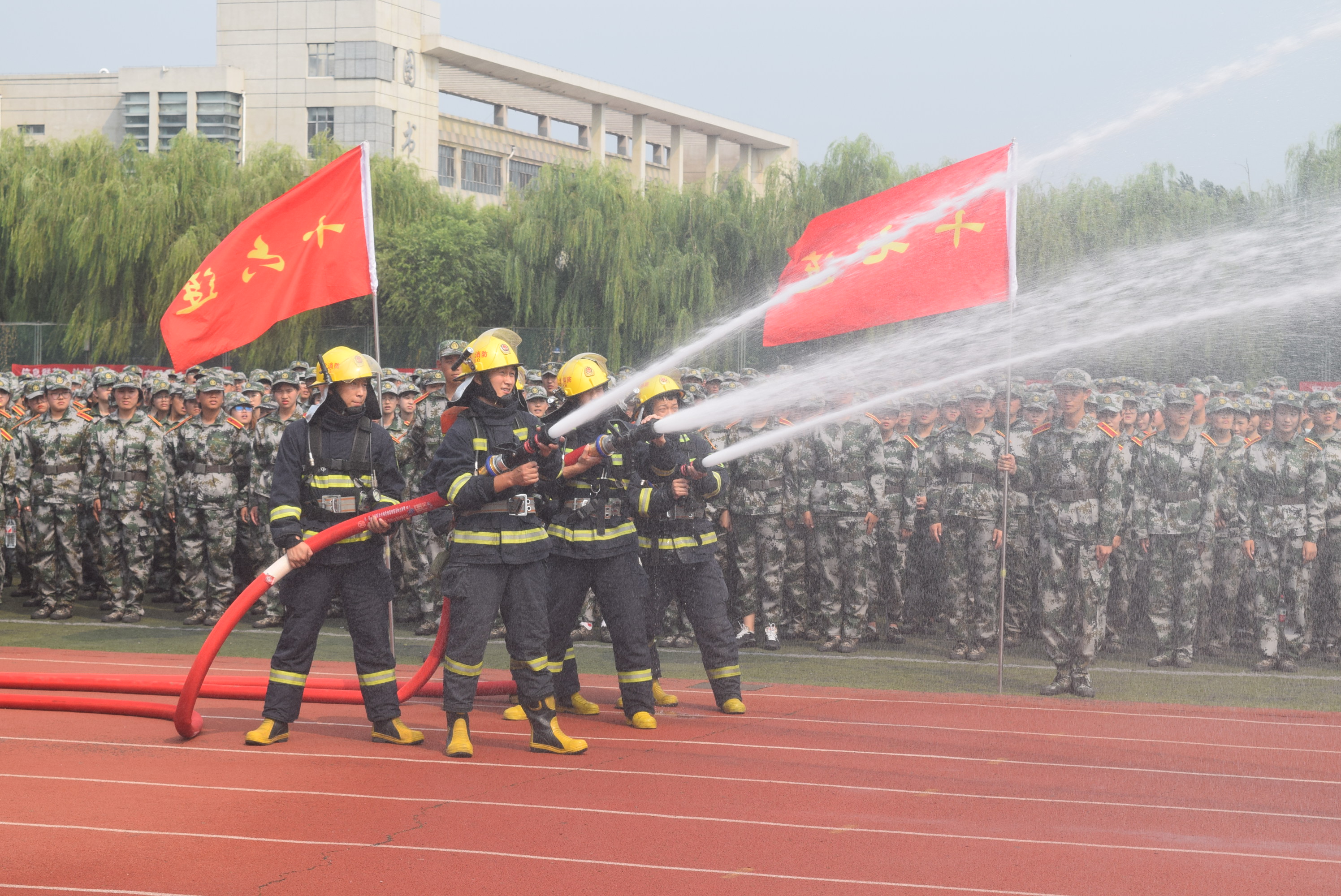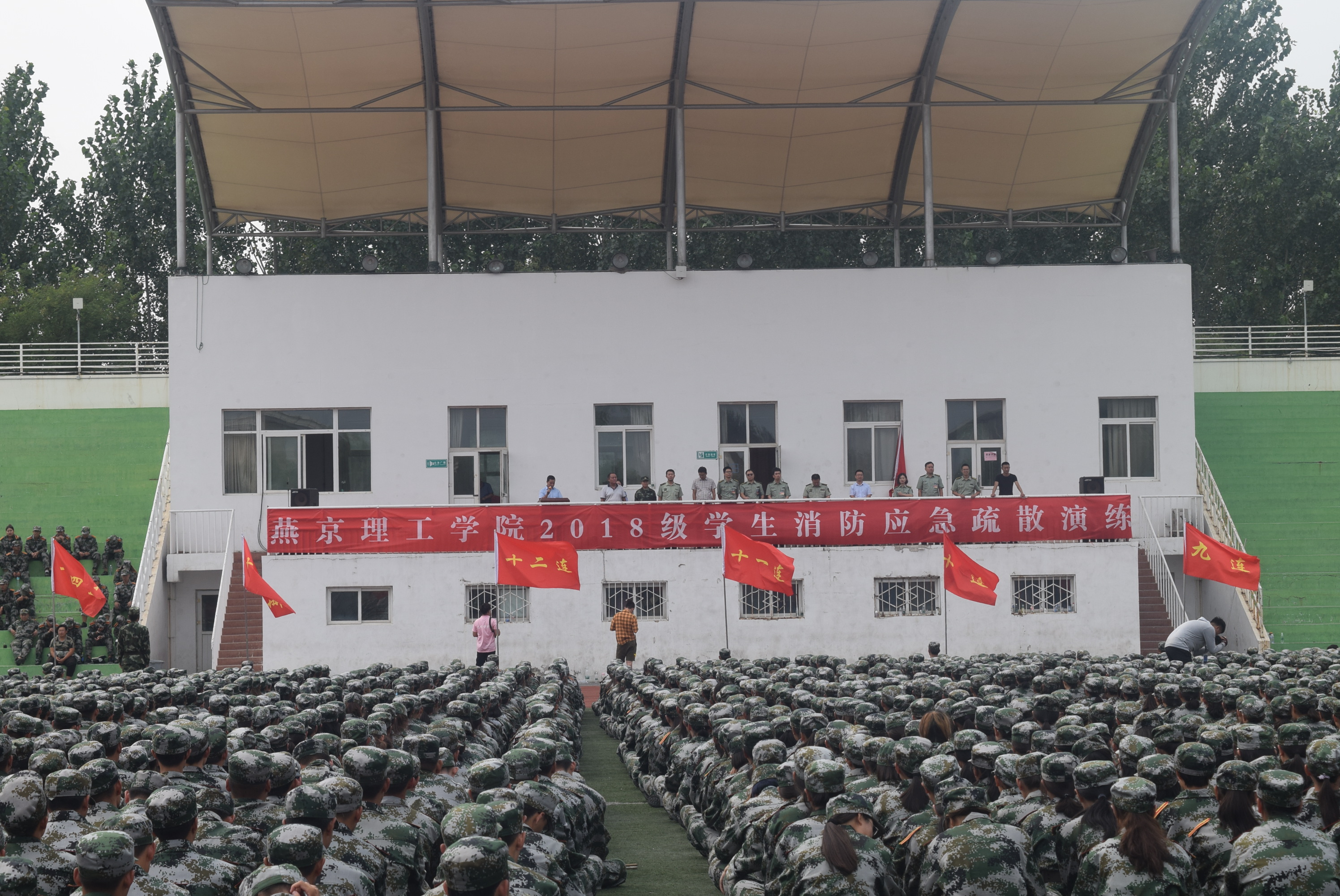 此次演练活动由我校安全处组织,得到了三河消防大队和燕郊消防中队的大力支持与配合。对此次消防演练我校领导高度重视,并将其作为新生必修课目列入军训计划,安全处本着"实情什么样,演练就怎么搞"的原则进行周密部署,完善预案。疏散演练完毕后,新生们在操场集合,安全处处长马小栋对新生提出了三点要求:要求新生在迅速适应新环境的同时树立牢固的安全意识;要加强学校的消防安全管理和学生的消防安全教育;要保证“消防演习进军训”活动的扎实推进,促进“平安校园”的建设。