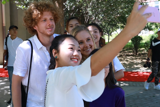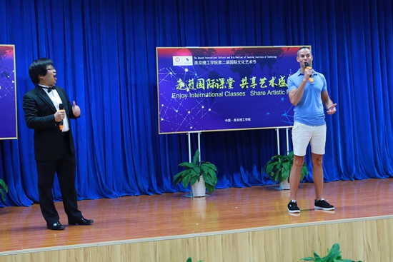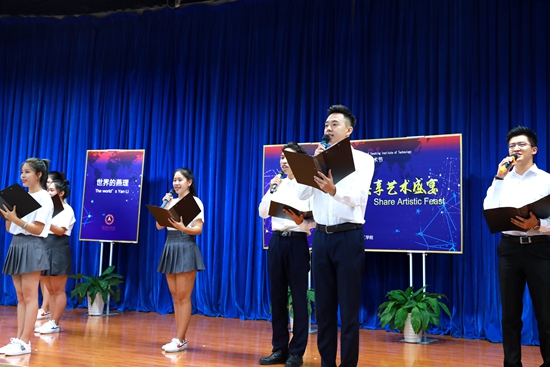 在学校报告厅举办的国际文化艺术交流活动上,学校师生与国外艺术家共同演绎中西文化艺术作品,艺术传媒类大一新生也参与其中。一曲由艺术学院教师陈航和加拿大艺术家Joey Niceforo合唱的经典中文歌曲《鸿雁》,引发了全场关注。在中外艺术家的共同演绎下,这首极具东方特色的歌曲展现出别样的韵味,也体现了艺术无国界国际文化艺术交流的主题。