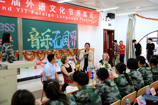 当日,第二届外语文化节启动,邀请艺术家们进行了“Music and my life”主题演讲交流活动,和大学生分享音乐故事。音乐是没有国界的,音乐可以把来自不同的文化背景的人们联系在一起,在交流环节,英语专业的学生们全程用英文向艺术家们分享自己生命中最重要的一首歌,并讲述歌曲背后的故事,分享自己的心路成长历程。
