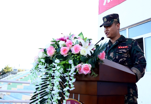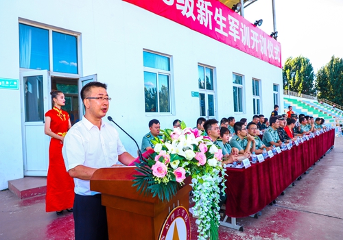 校党委副书记、校长助理刘鹏飞在开训仪式上发表重要讲话。他对参加军训的同学提出五点希望,一是要尊敬老师,服从教官,令行禁止,一切行动听指挥;二是要按时到训,缺训请假,严格遵守队列纪律;三是要不怕苦,不怕累,以坚定的意志完成训练任务,争当优秀军训生;四是要团结友爱,互相帮助,培养团队精神,争创先进集体;五是要科学训练,注重实效,安全第一,防止发生事故。校长助理刘鹏飞希望每名新生在教官的科学训练和全体老师的监督下都能突破自我,勇往直前,成为一名合格的战士。