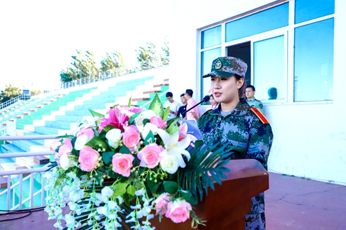 2018级新生代表王禹诺代表全体军训新生发言。她谈到,军训是大家入学迎来的第一项挑战,军训期间同学们会恪守军纪,学习军人的优秀品质和毫无条件的服从精神,圆满完成军训任务。