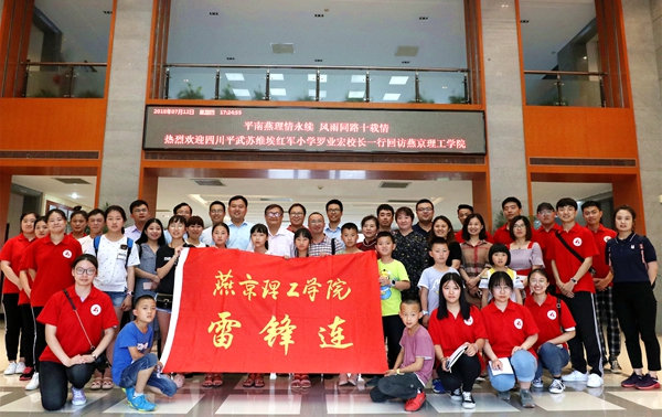 汶川大地震以来,燕京理工学院雷锋连连续十年不间断的组织学生前往四川平南开展支农支教活动,为他们送去知识和温暖。汶川地震十周年之际,雷锋连将平武苏维埃小学师生接来北京,带他们领略外面精彩世界。继2011、2014后,第三次邀请大山里的孩子走进北京,走进燕京理工学院,为此学校理事长吴保德对师生来访十分重视,并做了重要指示和安排。7月11日晚,党委书记李建英、文法学院党总支书记贾瑞、学生处副处长李飞热情接待了平武苏维埃红军小学校长罗业宏和孩子们一行。