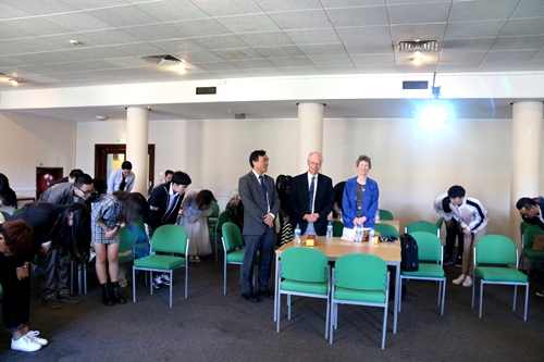 在结业答辩现场,同学们以小组为单位用英文脱稿的形式依次发言,详细介绍调查问卷所得出的数据及结论。每一个小组都展现了他们饱满的热情。斯旺西大学Trevo博士和夫人Margaret对每组的展示进行点评,同学们流利的英语和优秀的选题让Trevor博士赞不绝口。答辩结束,同学们顺利获得了斯旺西大学颁发的结业证书。